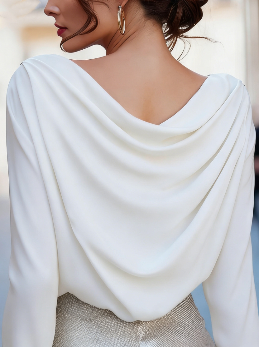 Elegant Solid-Color Draped Pleated V-Neck Blouse For Women
